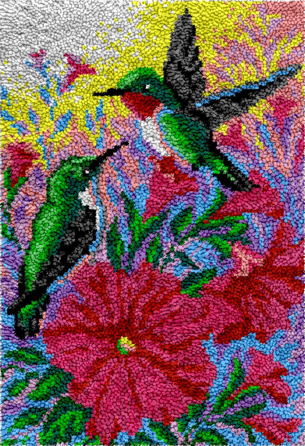 Everything you need to get started right away is already included; printed canvas, pre-cut yarn, plastic hook and instructions. When you are finished, you will have created a beautiful lush rug.