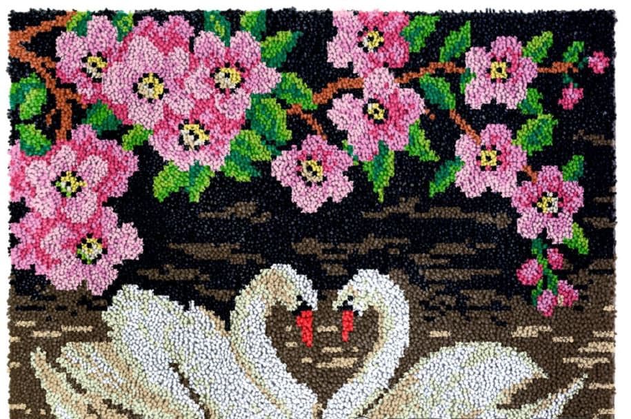 This Two Swans Lake Rug Making Latch Hooking Kit will give you a rug that is wonderfully lush. This rug is easy to fit any decor and the possibilities are astounding. You can use this rug on the floor, wall, sofa, bed or window.