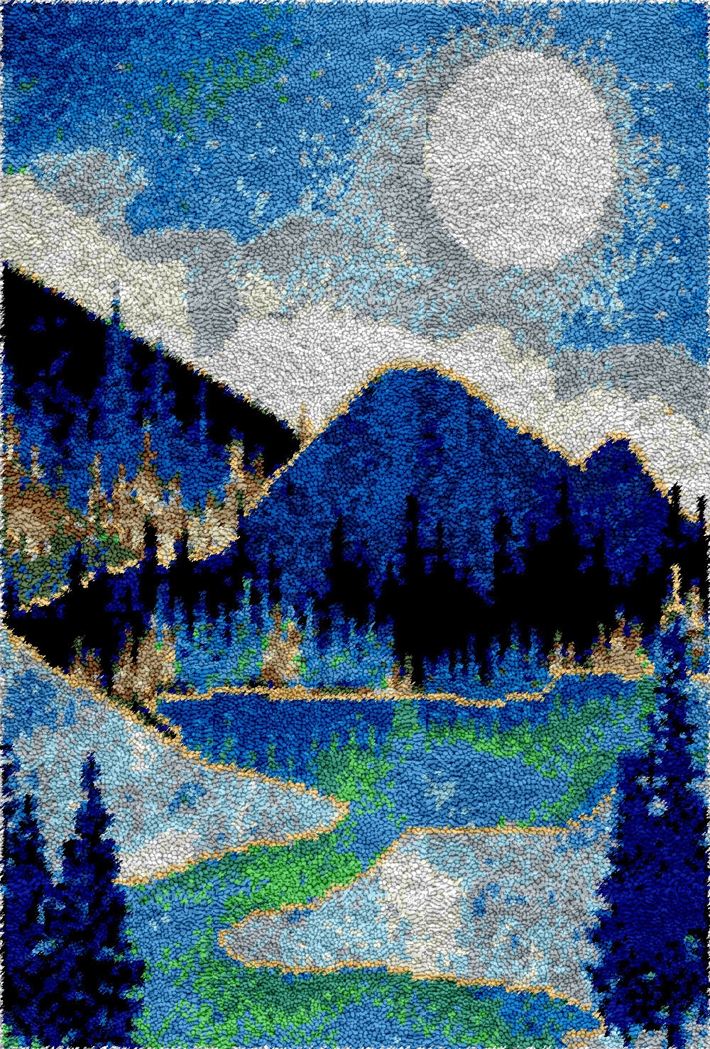 This Mountains & Lake Rug Making Latch Hooking Kit will give you a rug that is wonderfully lush. This rug is easy to fit any decor and the possibilities are astounding. You can use this rug on the floor, wall, sofa, bed or window.