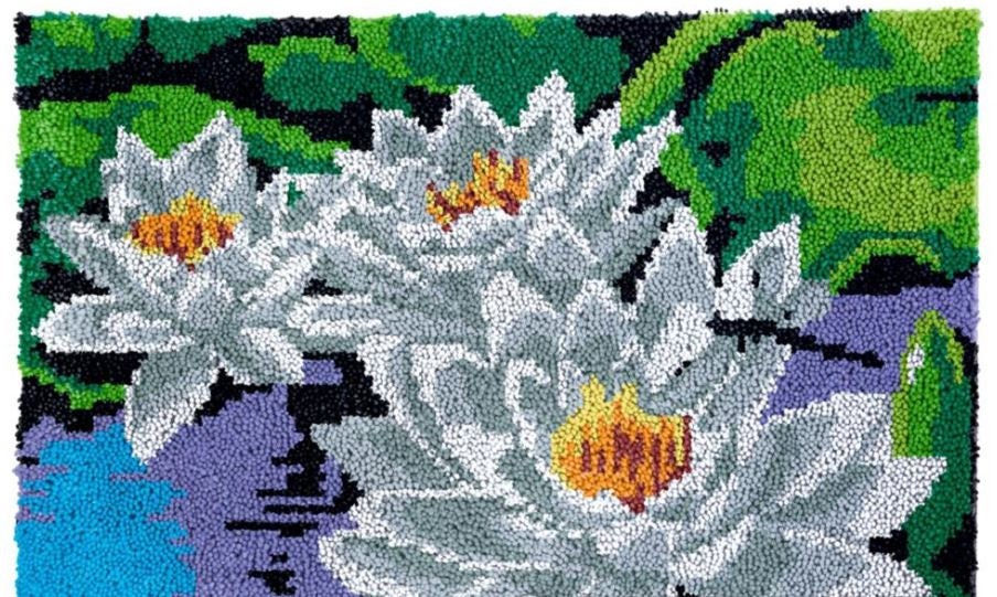 This White Lotus Rug Making Latch Hooking Kit will give you a rug that is wonderfully lush. This rug is easy to fit any decor and the possibilities are astounding. You can use this rug on the floor, wall, sofa, bed or window.