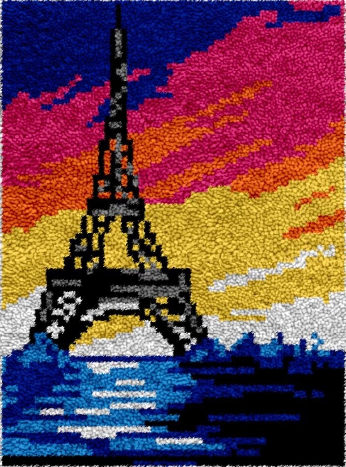 This Paris Sunset Rug Making Latch Hooking Kit will give you a rug that is wonderfully lush. This rug is easy to fit any decor and the possibilities are astounding. You can use this rug on the floor, wall, sofa, bed or window.