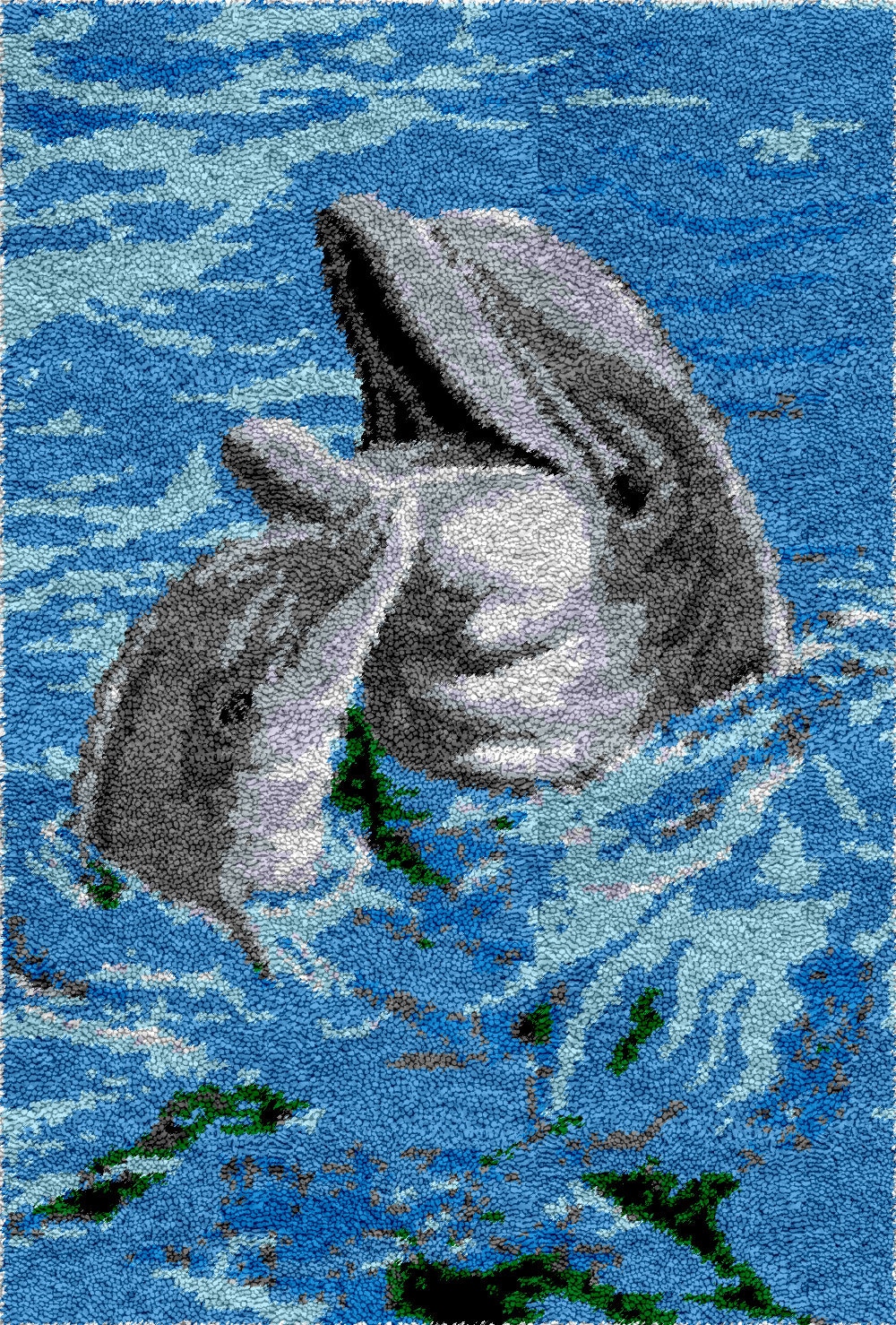This 2 Dolphins Rug Making Latch Hooking Kit will give you a rug that is wonderfully lush. This rug is easy to fit any decor and the possibilities are astounding. You can use this rug on the floor, wall, sofa, bed or window.