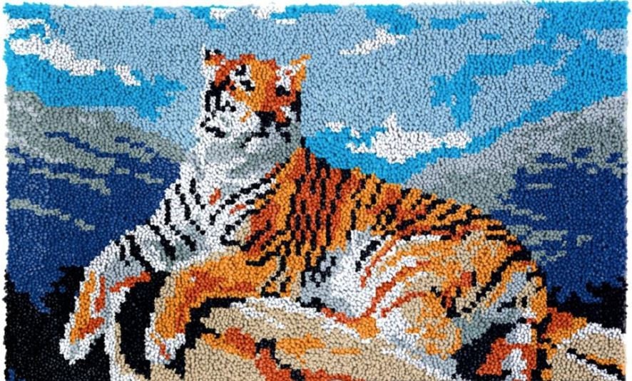 This Tiger on Rocks Rug Making Latch Hooking Kit will give you a rug that is wonderfully lush. This rug is easy to fit any decor and the possibilities are astounding. You can use this rug on the floor, wall, sofa, bed or window.