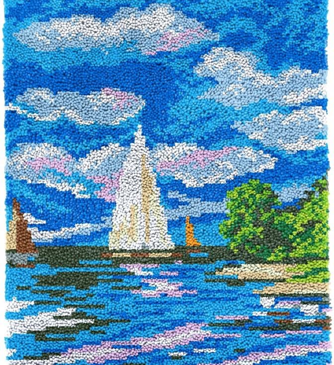 This Coastal Scenery Rug Making Latch Hooking Kit will give you a rug that is wonderfully lush. This rug is easy to fit any decor and the possibilities are astounding. You can use this rug on the floor, wall, sofa, bed or window. Canvas is cut by hand, sizes may vary by a cm or two.