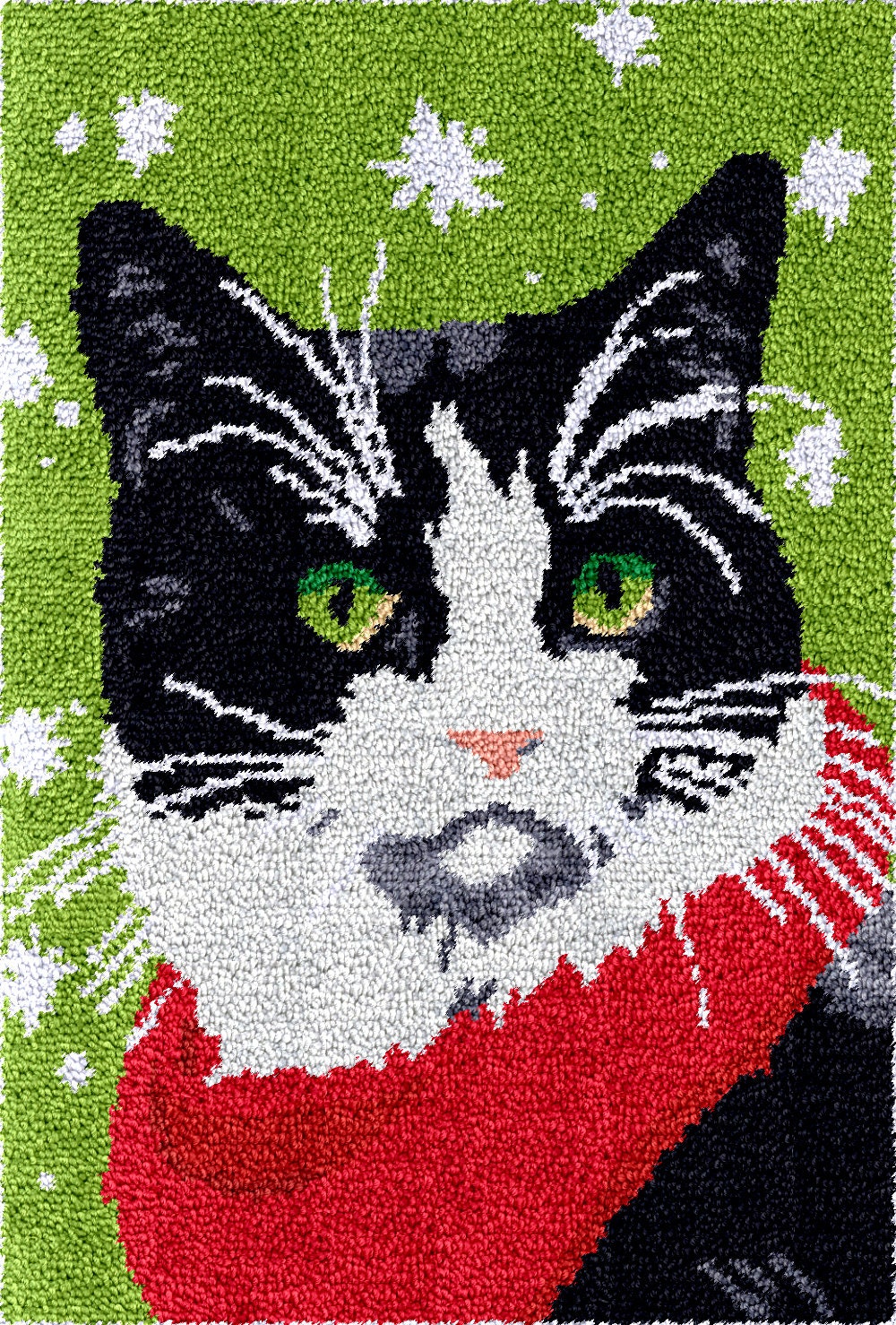 This Cat with Red Scarf Rug Making Latch Hooking Kit will give you a rug that is wonderfully lush. This rug is easy to fit any decor and the possibilities are astounding. You can use this rug on the floor, wall, sofa, bed or window.