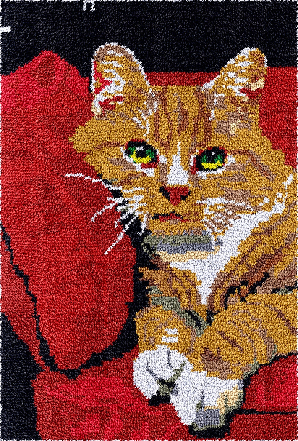 This Cat on Red Sofa Rug Making Latch Hooking Kit will give you a rug that is wonderfully lush. This rug is easy to fit any decor and the possibilities are astounding. You can use this rug on the floor, wall, sofa, bed or window.
