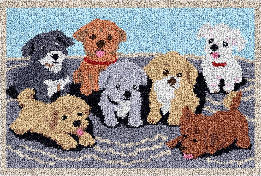 This Six Puppies Rug Making Latch Hooking Kit will give you a rug that is wonderfully lush. This rug is easy to fit any decor and the possibilities are astounding. You can use this rug on the floor, wall, sofa, bed or window.