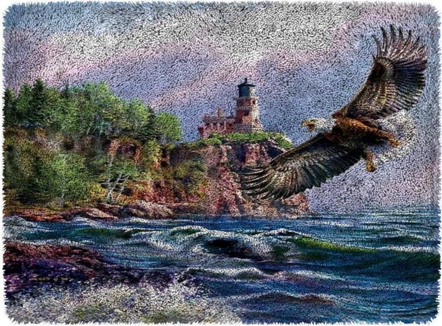 This Eagle Lighthouse Rug Making Latch Hooking Kit will give you a rug that is wonderfully lush. This rug is easy to fit any decor and the possibilities are astounding. You can use this rug on the floor, wall, sofa, bed or window.