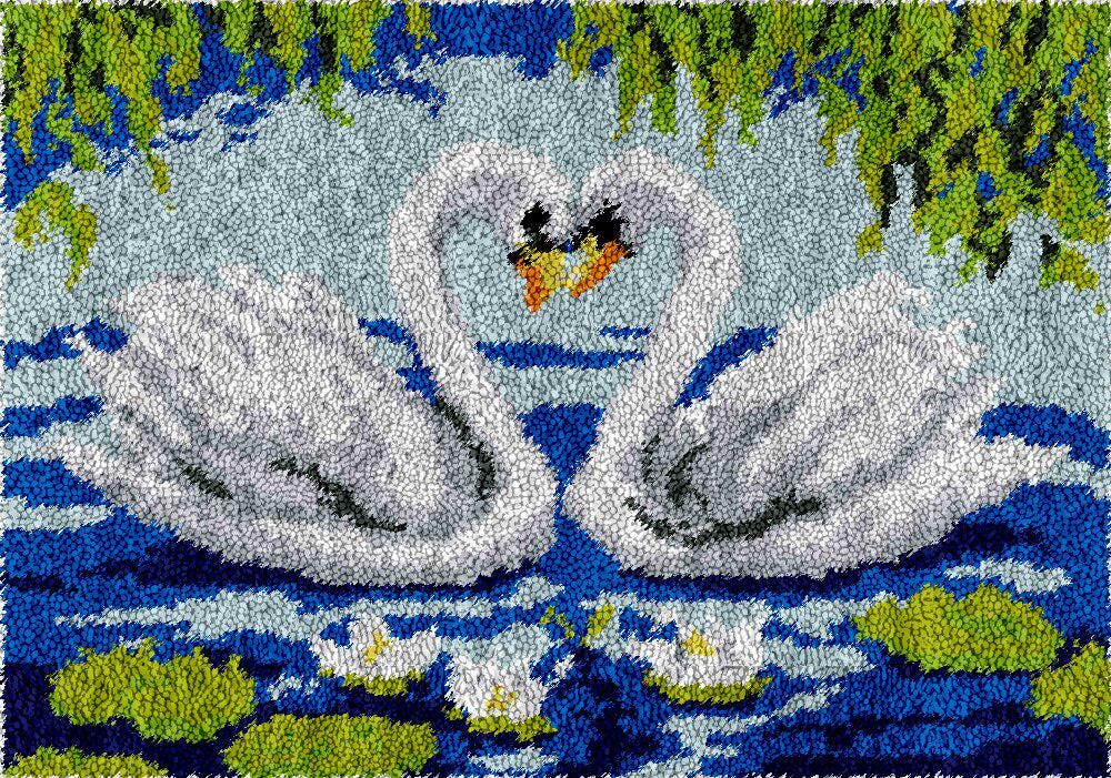 This Rug Making Latch Hooking Pattern Swans Heart will give you an approx 52 x 38 cm rug that is wonderfully lush. This rug is easy to fit any decor and the possibilities are astounding. You can use this rug on the wall, sofa, bed or window.