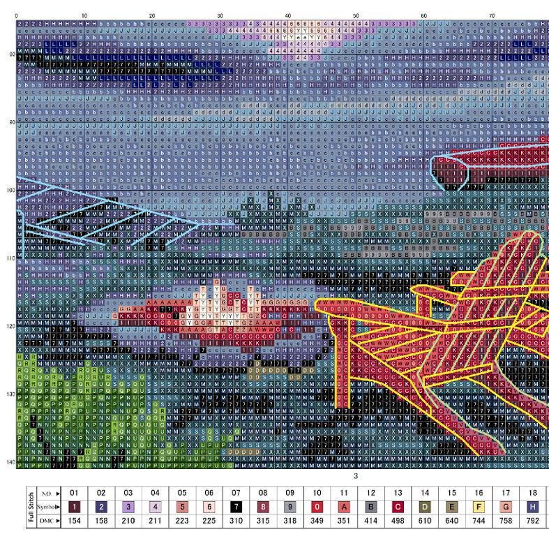 Counted Cross Stitch Color PDF Pattern with Floss Key, Symbol Key and Finished Design Photo