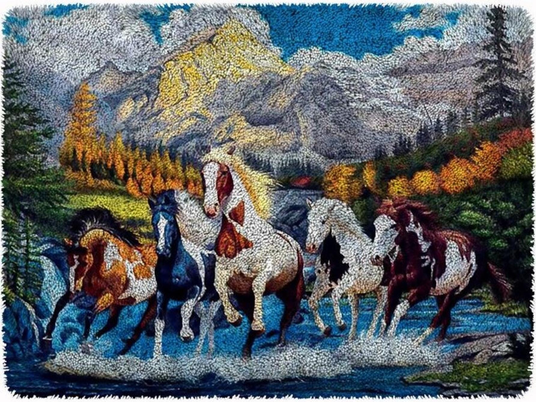 Rug Making Latch Hooking Kit | Horses Galloping in Stream