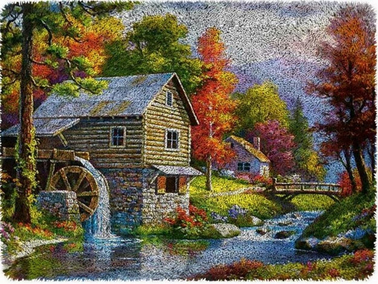 This Rug Making Latch Hooking Kit | Watermill will give you a rug that is wonderfully lush. This rug is easy to fit any decor and the possibilities are astounding. You can use this rug on the floor, wall, sofa, bed or window.