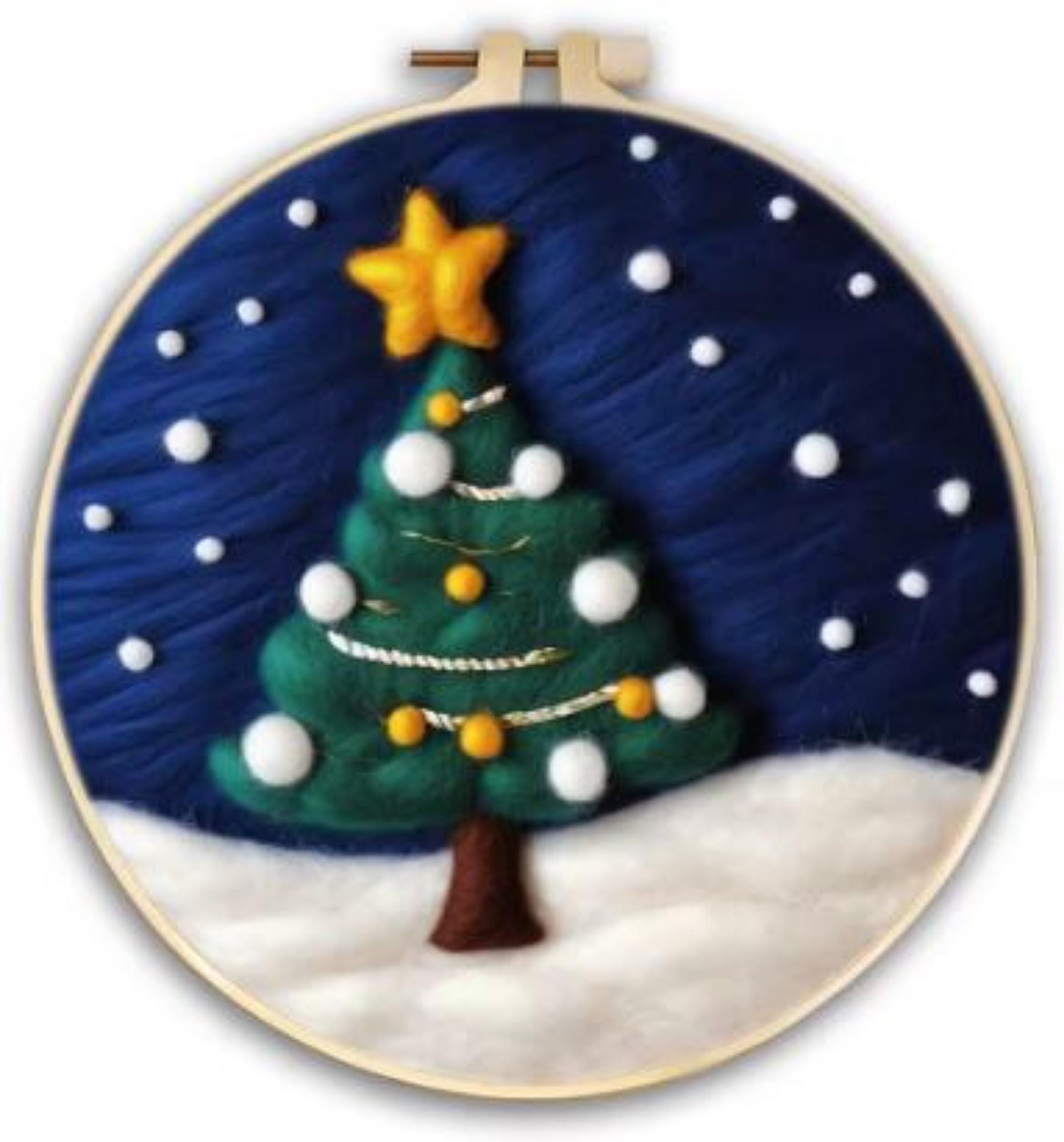 This Needle Wool Felting Kit for Beginners | Christmas Tree is a DIY kit, you need to do your own 20 cm embroidery. Printed fabric, the pattern has been printed on the canvas, so the canvas cannot touch the water before the embroidery is completed, otherwise the printed part will disappear. Upon completion, put the fabric into the water for half an hour, let it dry, and then you can make a frame for it. You can hang it in the living room, study, kitchen, bedroom, etc. Frame is included.