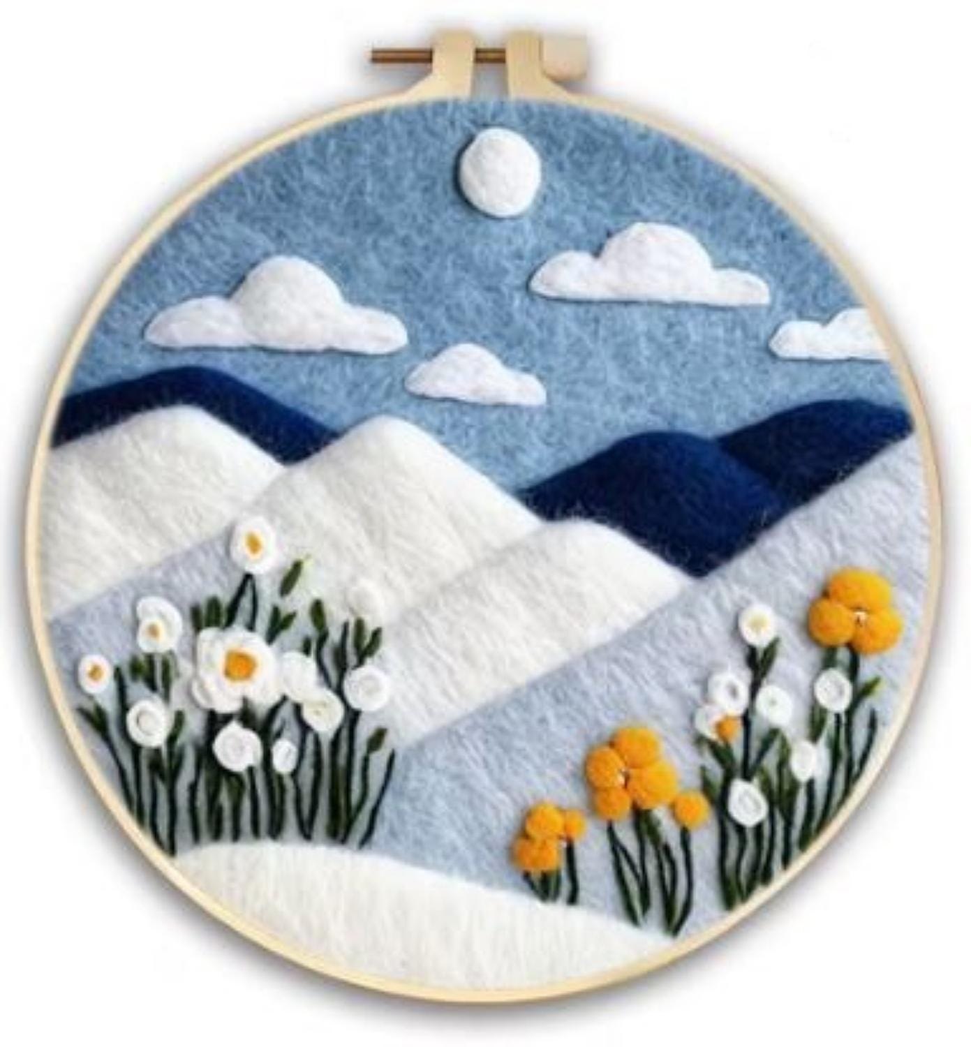 This Needle Wool Felting Kit for Beginners | Winter Flowers is a DIY kit, you need to do your own 20 cm embroidery. Printed fabric, the pattern has been printed on the canvas, so the canvas cannot touch the water before the embroidery is completed, otherwise the printed part will disappear. Upon completion, put the fabric into the water for half an hour, let it dry, and then you can make a frame for it. You can hang it in the living room, study, kitchen, bedroom, etc. Frame is included.