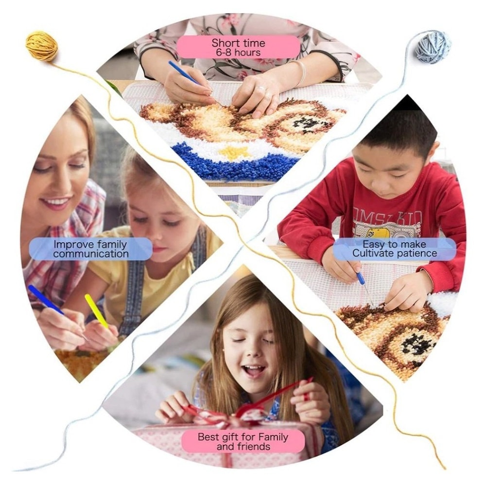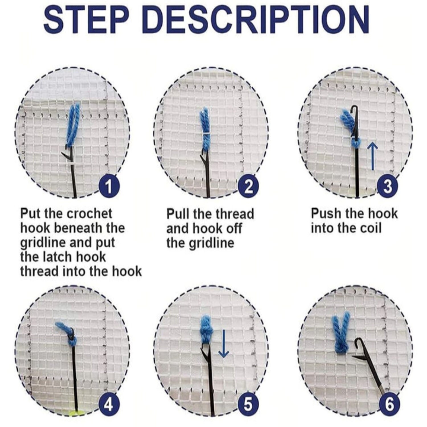 Everything you need to get started right away is already included; printed canvas, pre-cut yarn, plastic hook and instructions. When you are finished, you will have created a beautiful lush rug.